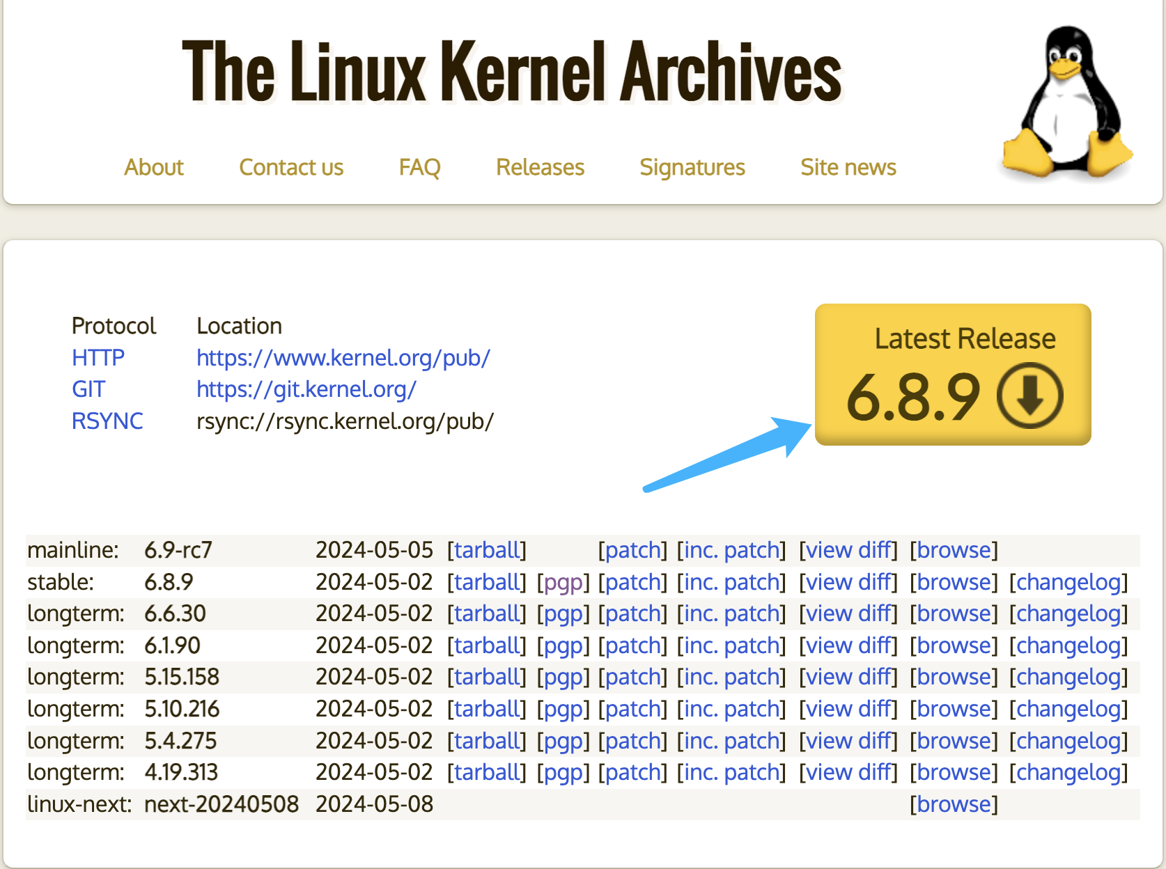我们直接来到这里进行下载就可以了,你可以下载一个你感兴趣的版本,而我就直接下载 6.8.9 这个版本了