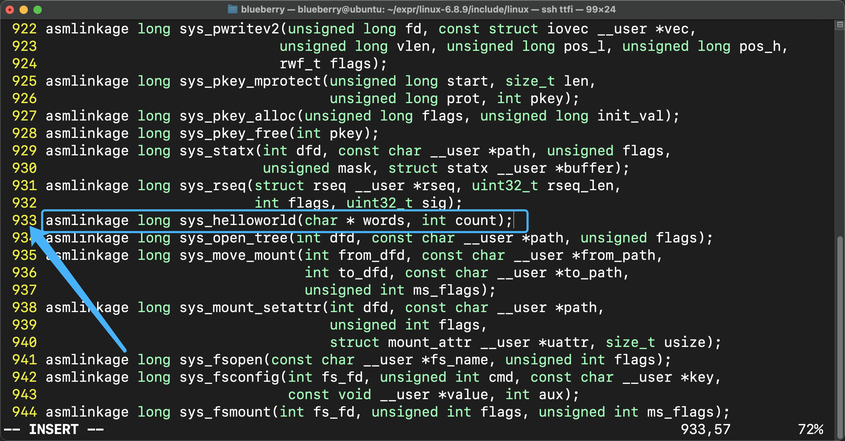 blueberry@ubuntu:~/expr/linux-6.8.9/include/linux$ vim syscalls.h