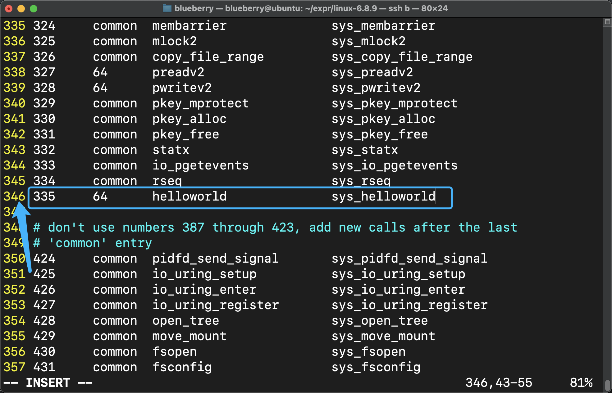 blueberry@ubuntu:~/expr/linux-6.8.9/arch/x86/entry/syscalls$ vim syscall_64.tbl