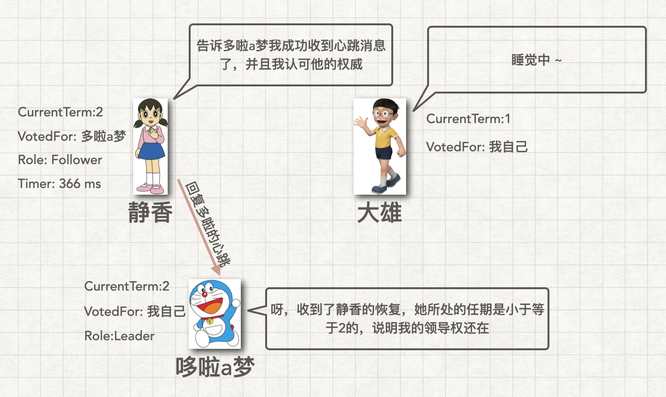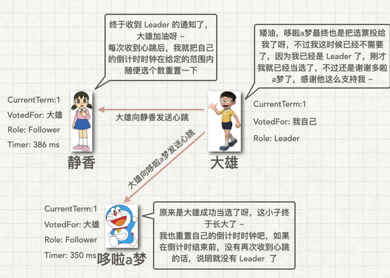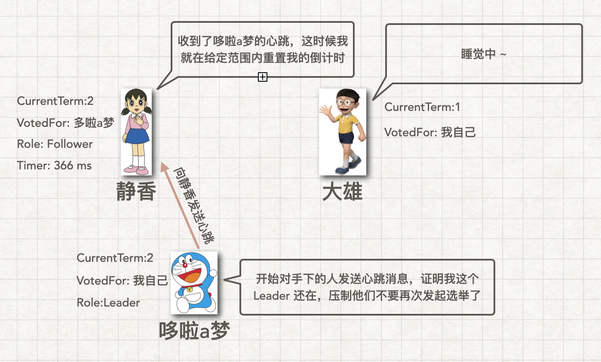 这时候,哆啦a梦开始发送心跳维护自己的权威