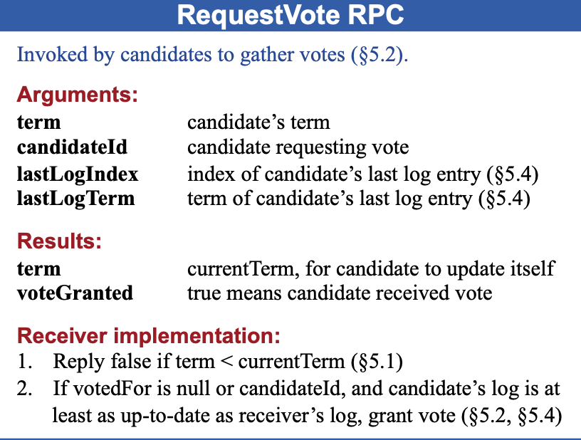 - 首先看看要票人的任期是不是比自己小:如果要票人的任期比自己小,那就直接拒绝给他投票,并且告诉他自己的任期是什么,当要票人收到回复后一旦发现自己的任期已经落后了,要票人就会直接从